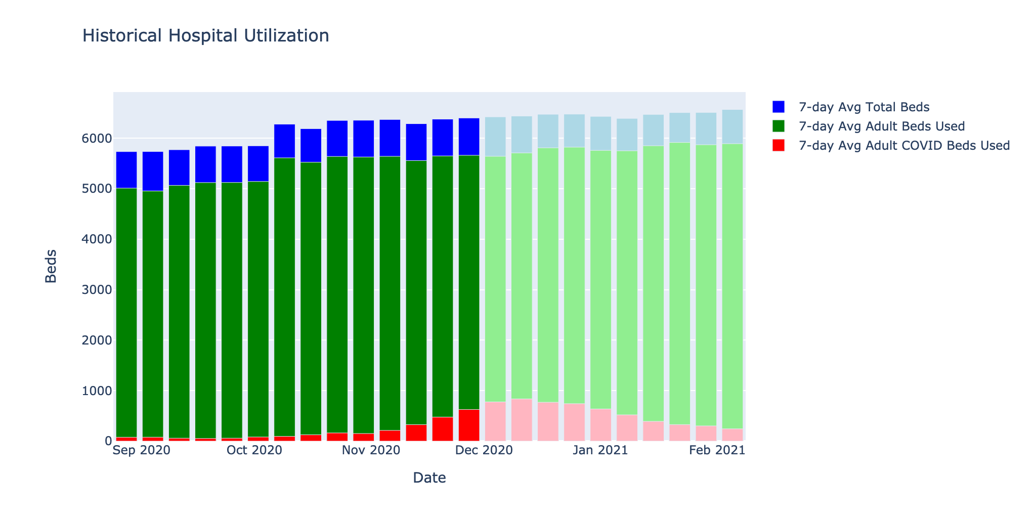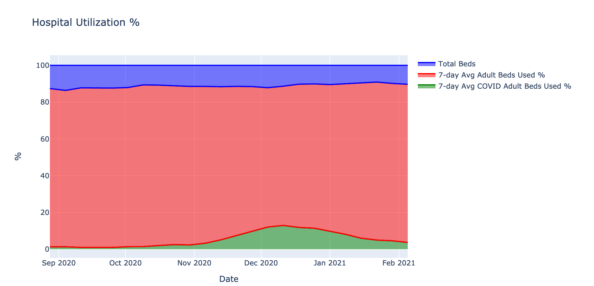 Fig. 5: Numbers of staffed COVID beds over time vs. capacity from the HHS Protect Data2